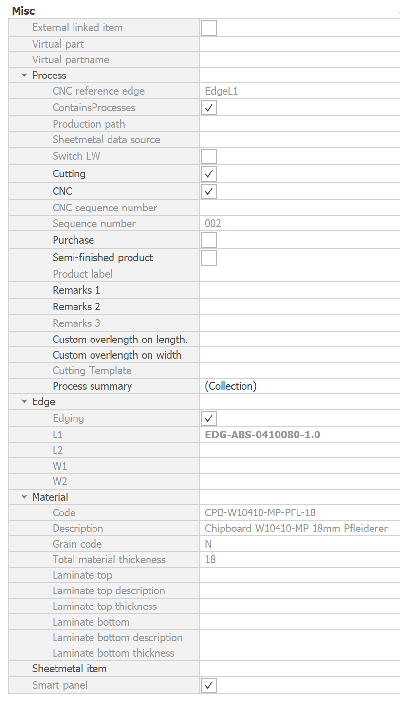 Most fields show the current status of, or information linked to, an item. Basically, the fields cannot be modified right away in the Property Grid. A small number of fields can be edited directly, such as remarks or overlength. See below for more information about these fields.