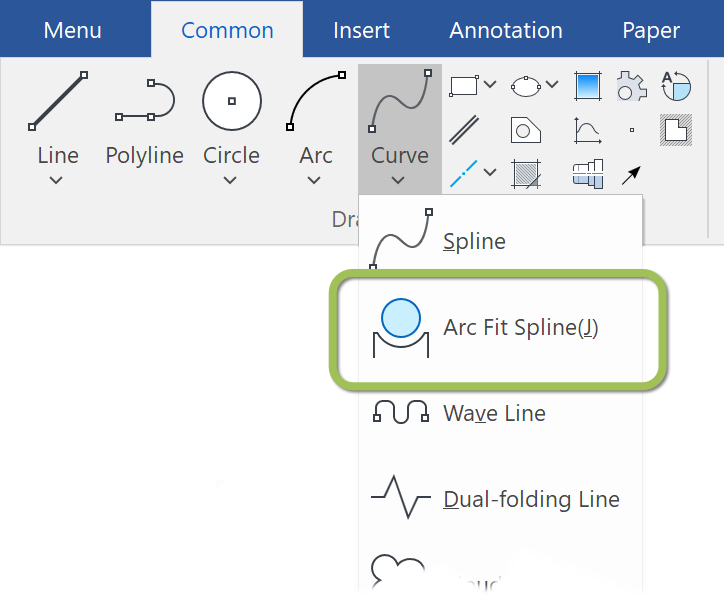 Using IronCAD Draft (previously called Caxa) or similar programs, such curves can be converted into standard circular lines. To do this, use the function shown in the image to the right.